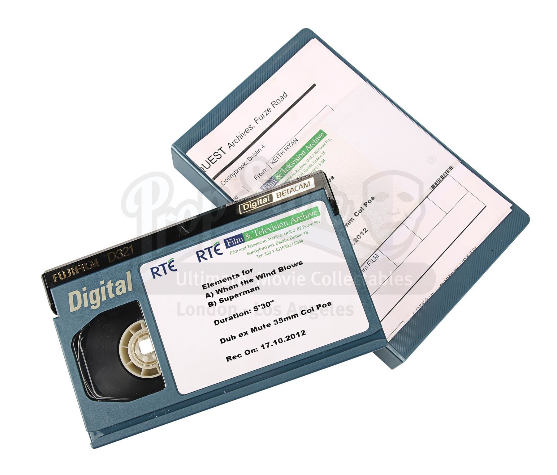 The footage also includes 20 seconds of EFX tests from Jimmy Murakami's animated disaster film When the Wind Blows (1986). Post Rank Productions (later Tony Long Opticals) worked on both films. The footage shows the main character James Bloggs and is an early attempt to combine animation with live-action skies. The film reel case shows signs of age and is rusted, but the reel within is well-preserved. Dimensions (film can): 27 cm x 27 cm x 4 cm (10 1/2" x 10 1/2" x 1 1/2"); (CD): 13 cm x 13 cm x 0.1 cm (5" x 5" x 0"); (Betamax): 17.5 cm x 11 cm x 3 cm (6 3/4" x 4 1/2" x 1 1/4")