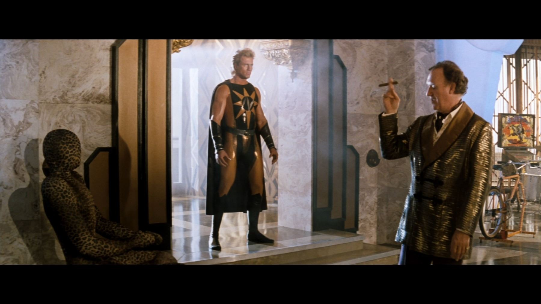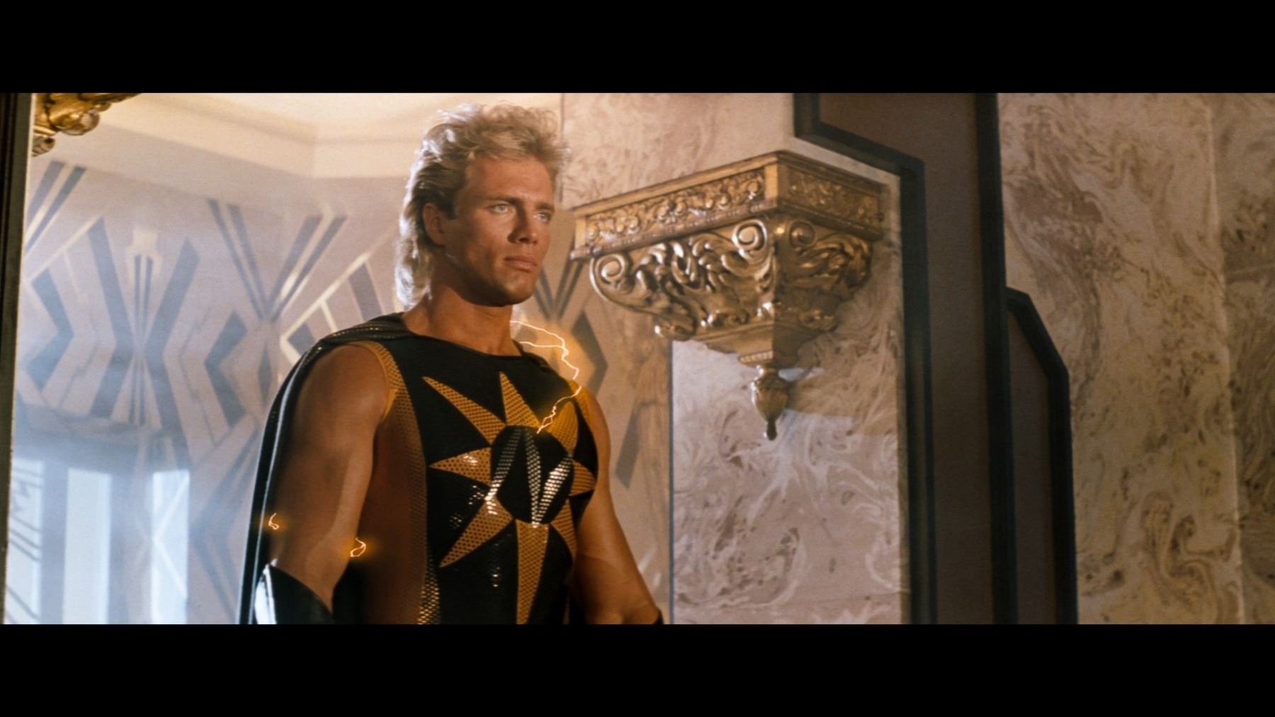 Nuclear Man's (Mark Pillow) costume from Sidney J. Furie's superhero sequel Superman IV: The Quest for Peace. Nuclear Man wore his costume throughout the film, after being created when Superman's (Christopher Reeve) "genetic matrix" was attached to a nuclear weapon and launched into the Sun.