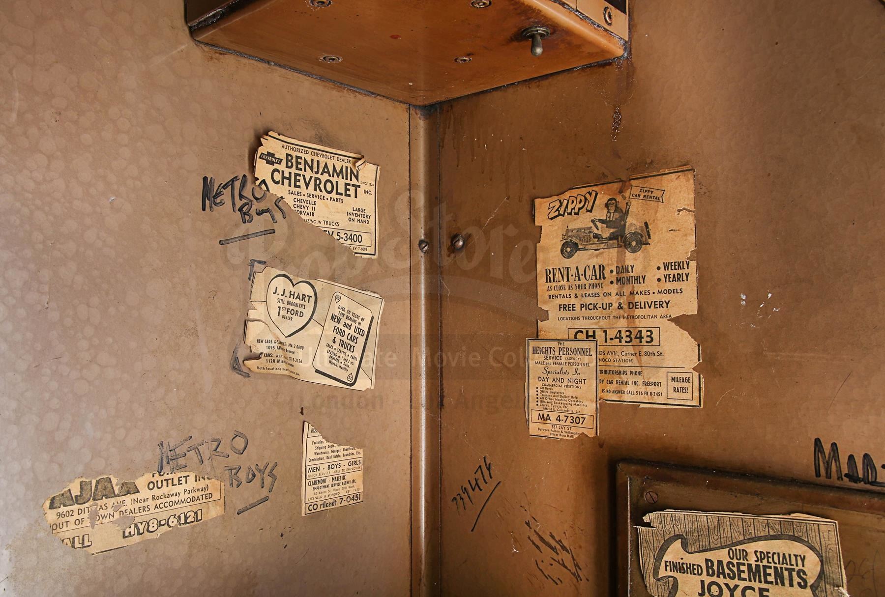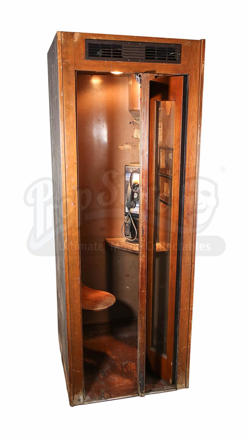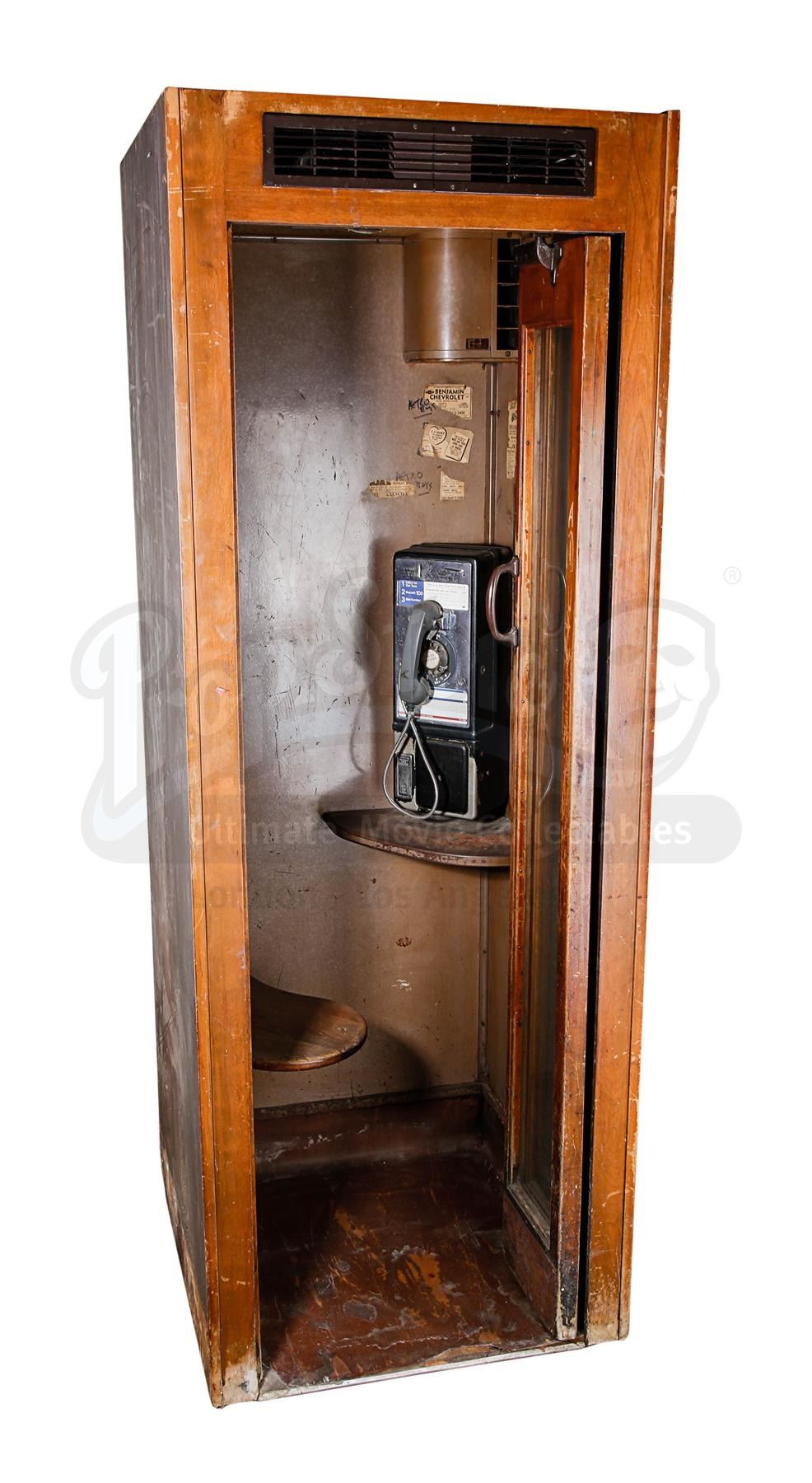 A phone box from Sidney J. Furie's superhero sequel Superman IV: The Quest for Peace. Clark Kent (Christopher Reeve) used a phone box in a subway station to transform into Superman and save Lois Lane (Margot Kidder) and a train full of passengers after the driver had a heart attack and the train went out of control. This phone box is screen-matched to the one in the film by the distinctively ripped paper adverts adhered to its inner surfaces.