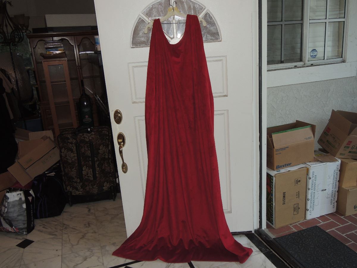 This is an unused test cape prototype of the longer flight cape from MAN OF STEEL. This is longer than the walk around capes. It is unfinished, and has no snaps.