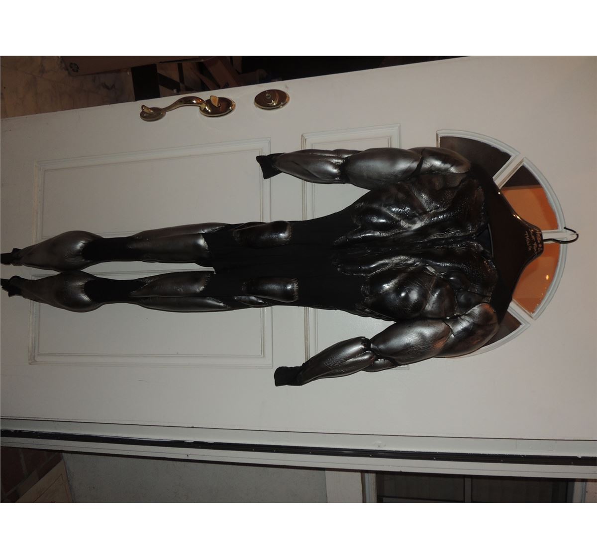 Between 20-30 outer suits were made for MAN OF STEEL, but only 8 of these Chromed foam muscle suits were produced to go with them. Of those, the 4 stunts were completely destroyed during filming.