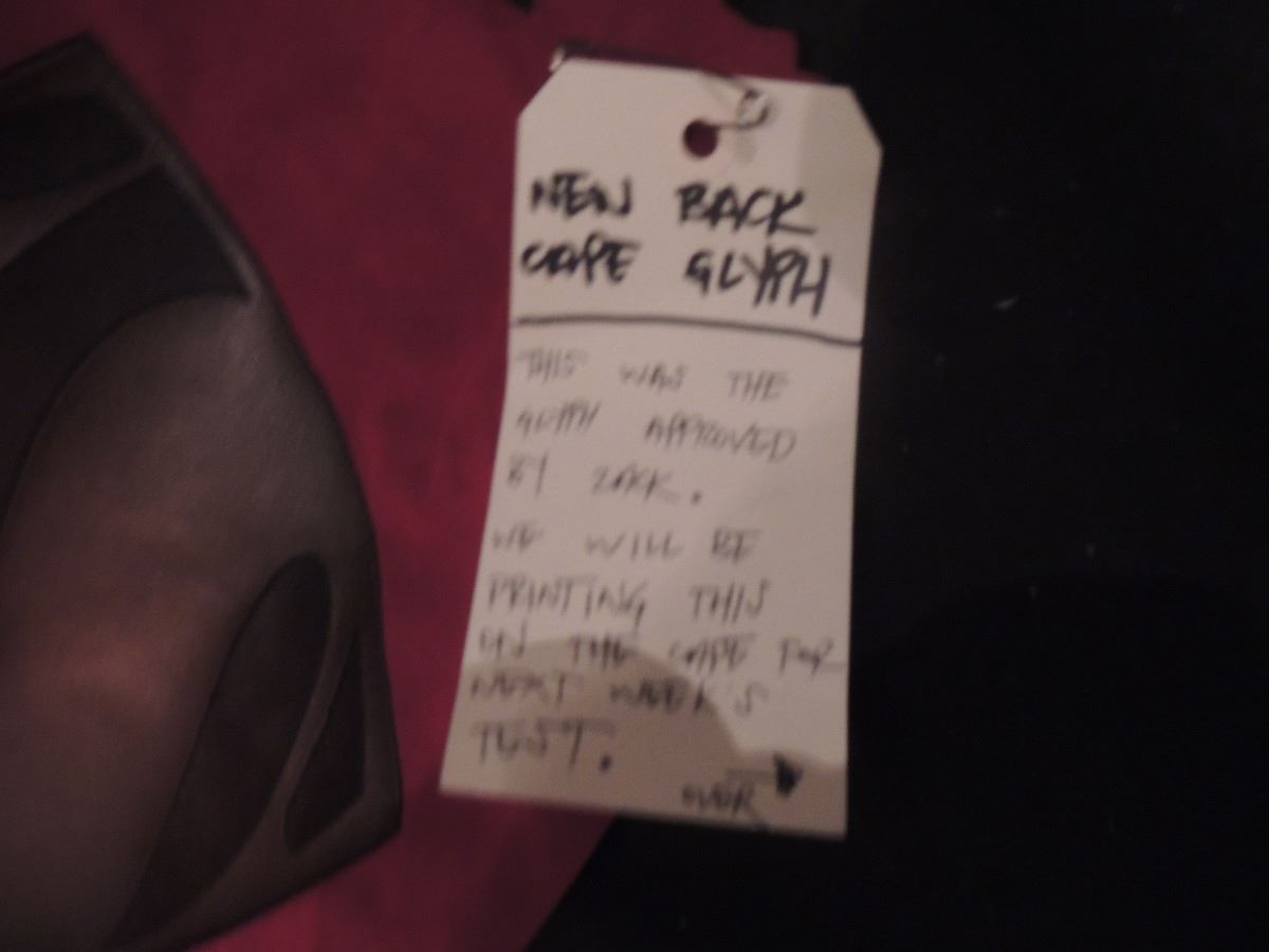 This is a Test glyph on cape material. As you well know, they did not have a glyph on SUPERMAN'S cape in MAN OF STEEL so this is unique for sure.