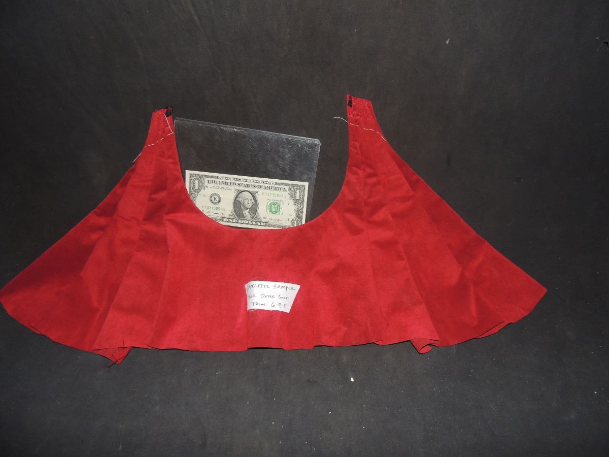 This is a cape top made as a test to figure out how to secure the cape to the suit. Still has production notes on it.