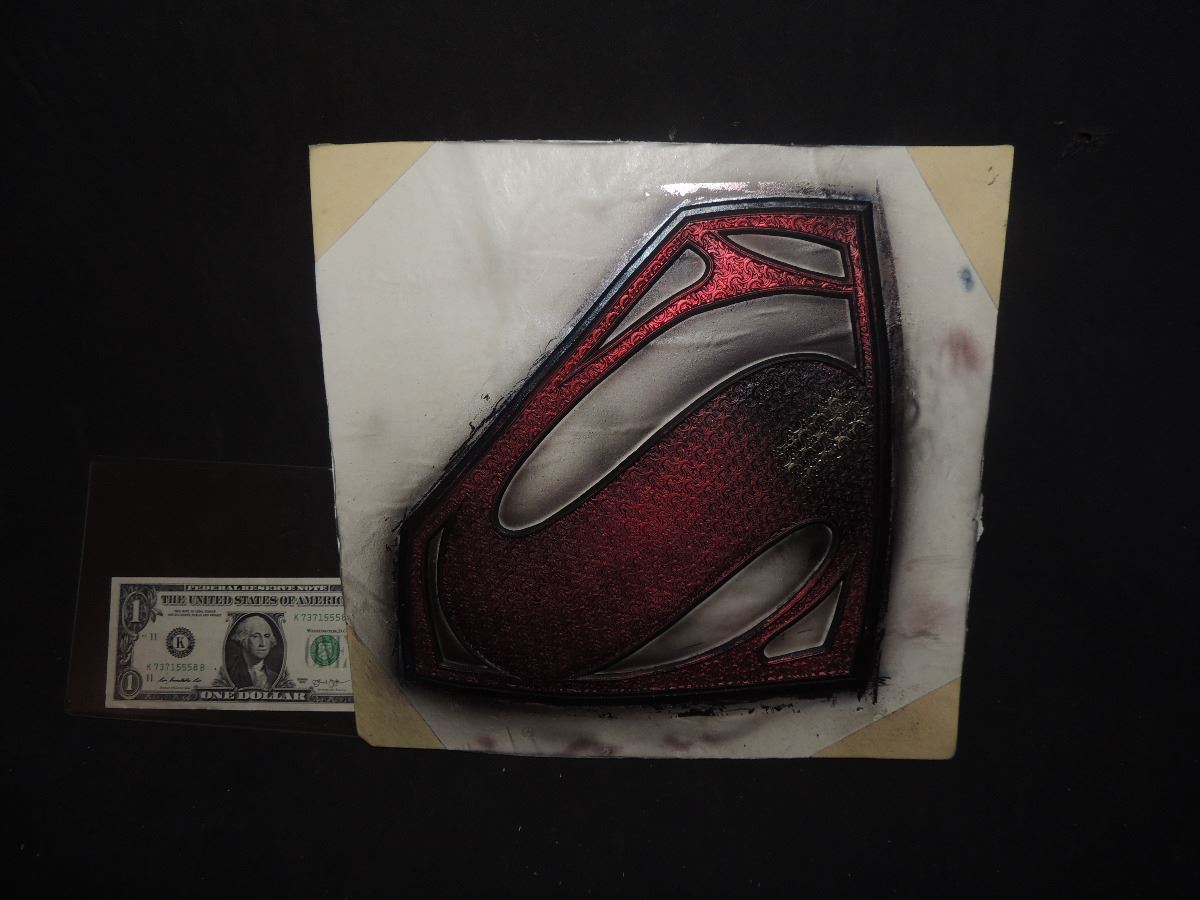 This is a test suit chest S glyph from the production of SUPERMAN, MAN OF STEEL!
