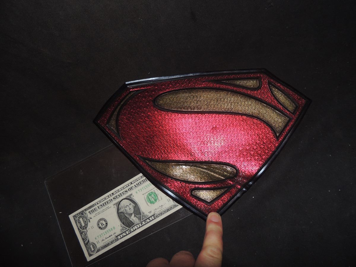 This is a test suit chest S glyph from the production of SUPERMAN, MAN OF STEEL!
