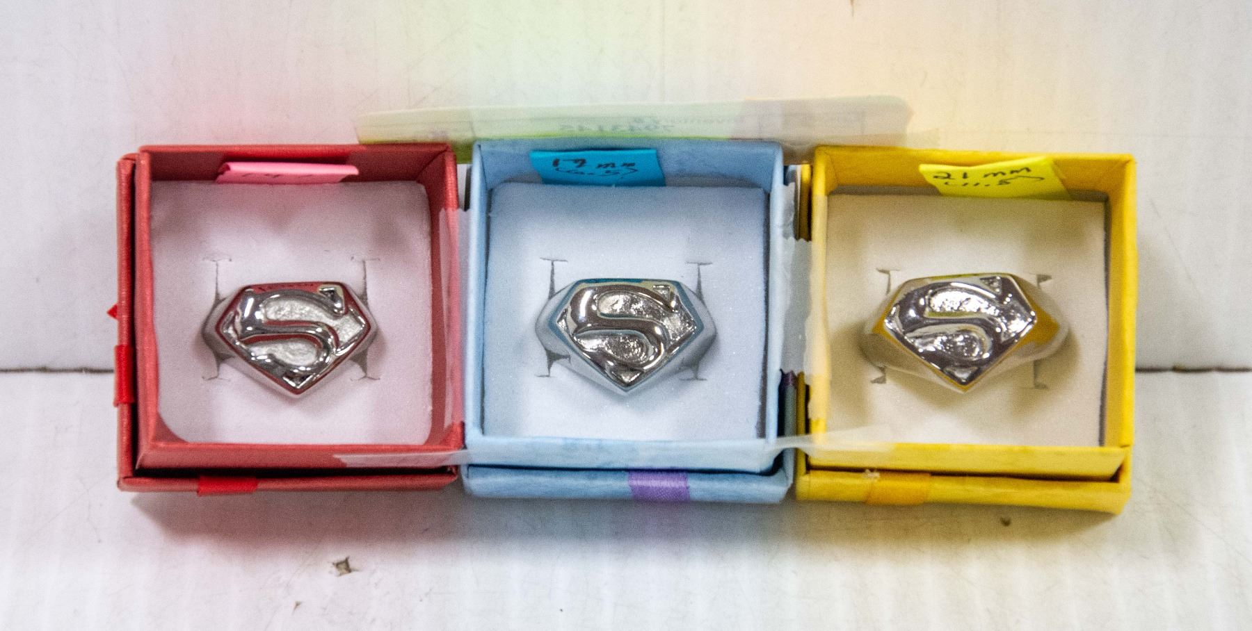 SUPERMAN RINGS (3). SIZE: 21, 17, & 15 MM.