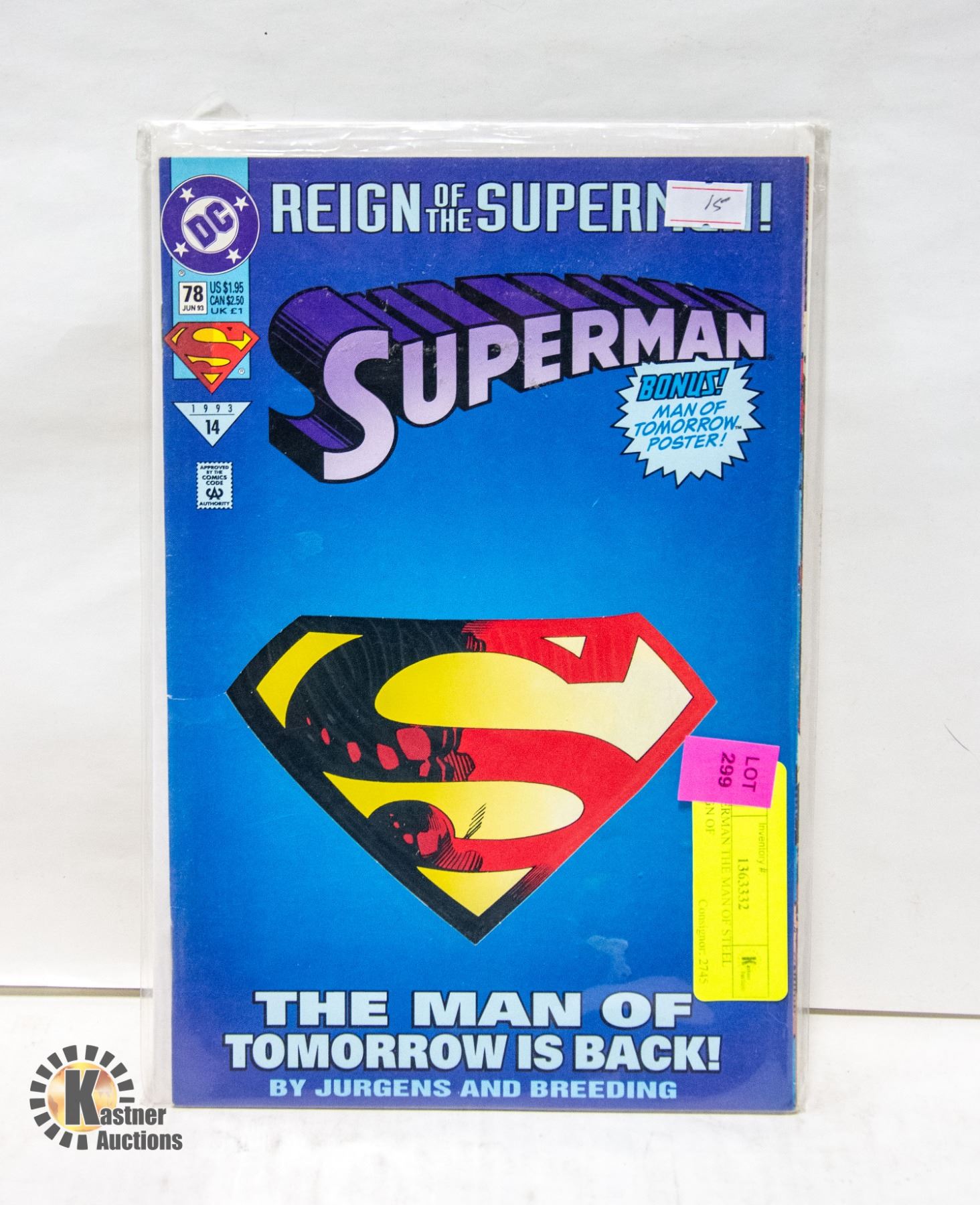 THE SUPERMEN 1993 DC #13 #22 JUNE 93 **ALL ITEMS MUST BE REMOVED BY 5PM SATURDAY, NOVEMBER 30TH 2024. ALL REMAINING ITEMS WILL BE SUBJECT TO A $6.00 PER DAY STORAGE CHARGE. ANY ITEMS REMAINING AFTER MONDAY, DECEMBER 16TH 2024 WILL BE CONSIDERED FORFEITED. NO REFUNDS WILL BE ISSUED FOR FORFEITED ITEMS. TO SCHEDULE A PICK UP APPOINTMENT CLICK HERE