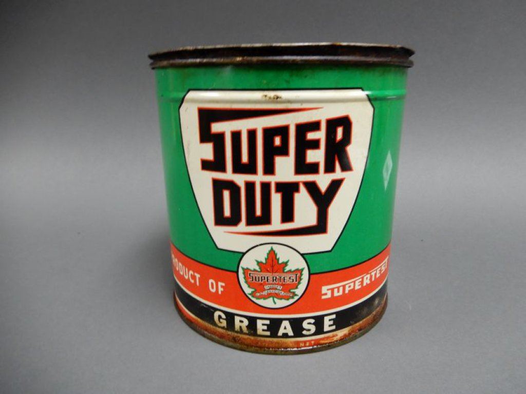 SUPERTEST SUPER DUTY 5 LB. GREASE CAN BILINGUAL- GREEN RIM MAPLE LEAF - SOME WEAR- FULL LOCATION: SUPERTEST ROOM
