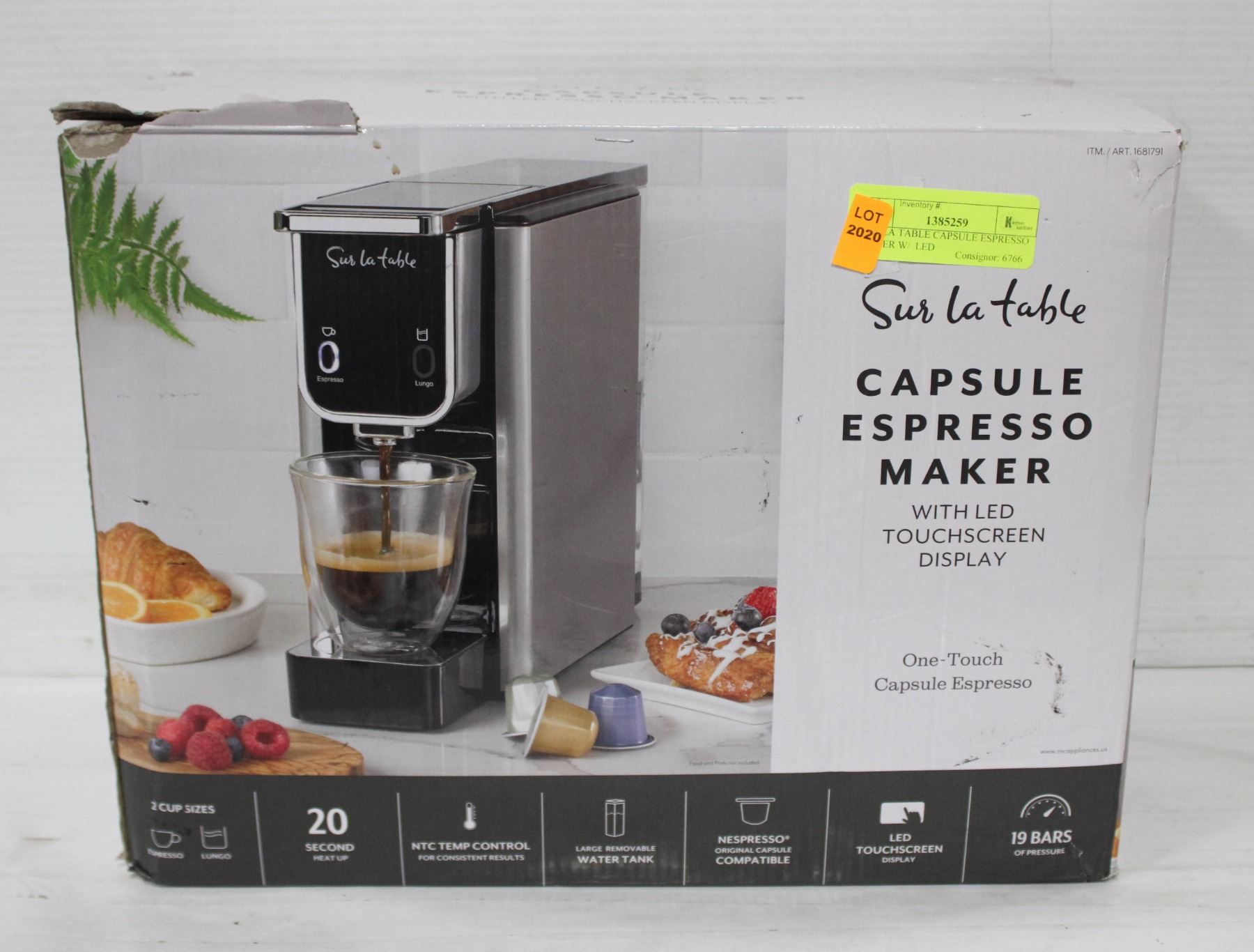 TOUCHSCREEN DISPLAY. NESPRESSO CAPSULES. 20 SECOND HEAT UP **ALL ITEMS MUST BE REMOVED BY 5PM SATURDAY, FEBRUARY 8TH 2025. ALL REMAINING ITEMS WILL BE SUBJECT TO A $6.00 PER DAY STORAGE CHARGE. ANY ITEMS REMAINING AFTER MONDAY, MARCH 3RD 2025 WILL BE CONSIDERED FORFEITED. NO REFUNDS WILL BE ISSUED FOR FORFEITED ITEMS. TO SCHEDULE A PICK UP APPOINTMENT CLICK HERE