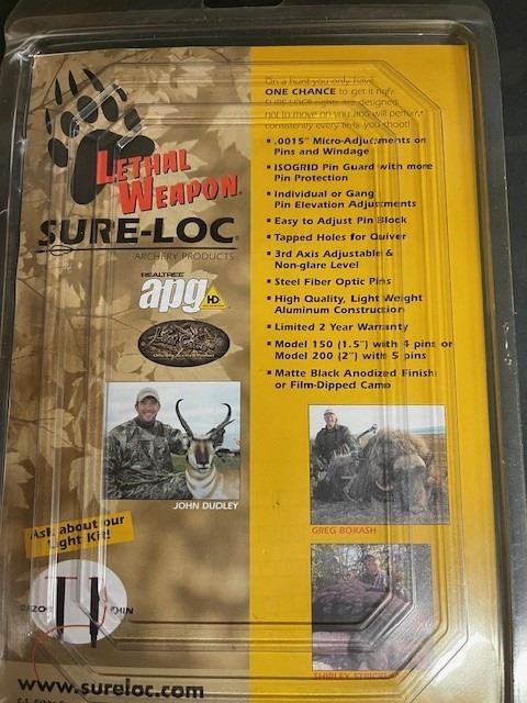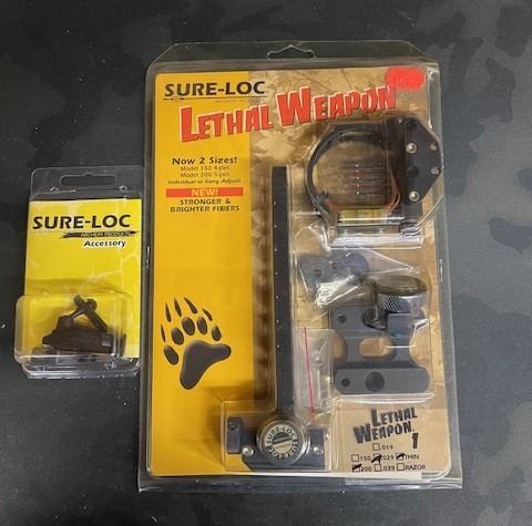 BRAND NEW IN ORIGINAL PACKAGING. SURE-LOC LETHAL WEAPON MODEL 200 5-PIN .029 THIN SIGHT AND TARGET LIGHT KIT