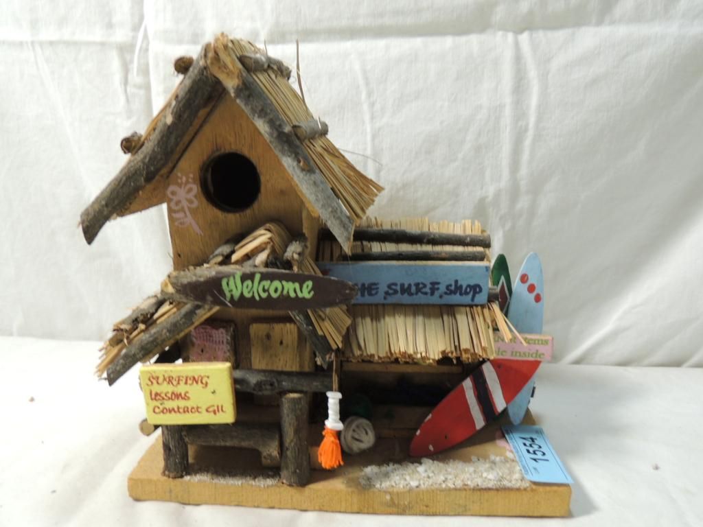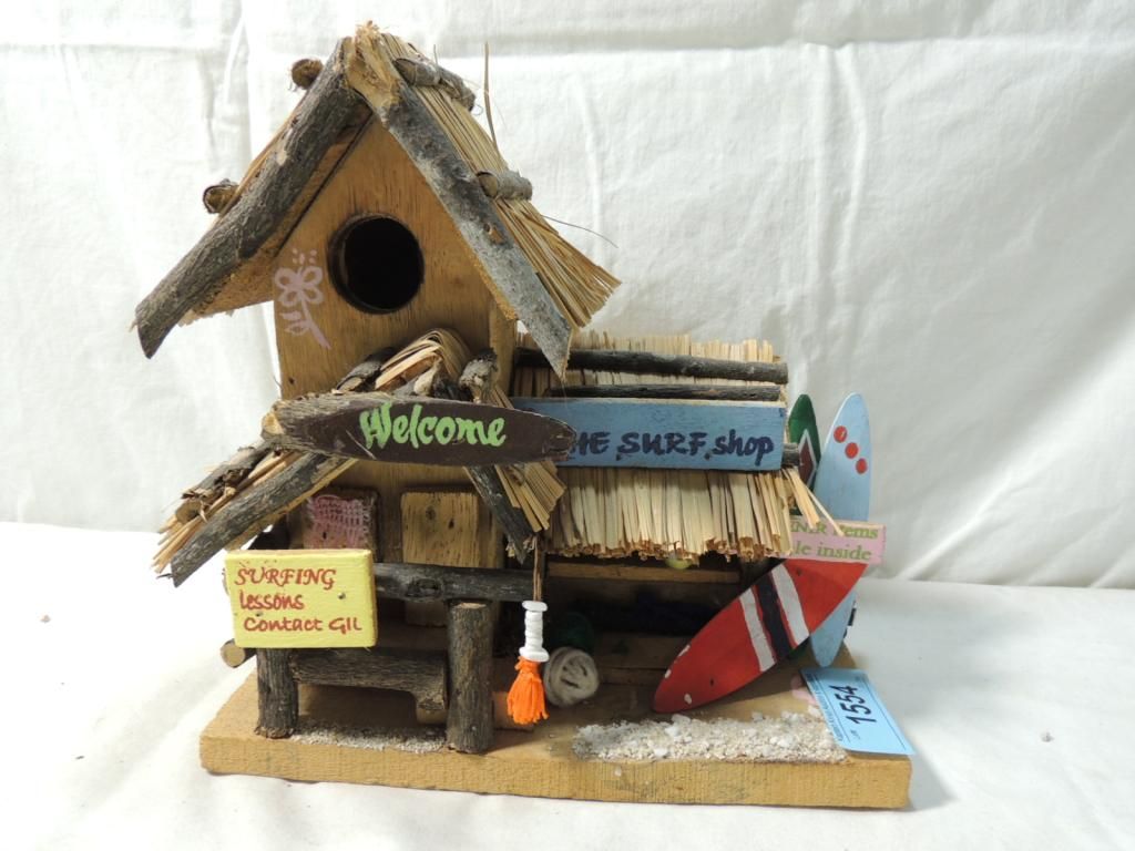 CUTE SURF SHOP BEACH BIRD HOUSE. CUTE BEACH THEME BIRD HOUSE. AS SHOWN SEE PHOTO FOR MORE DETAILS.