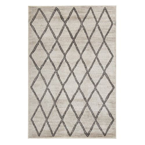 AN ASHLEY JARMO 5' X 7' AREA RUG. DONNING A BEAUTIFUL GATE DESIGN IN SHADES OF GRAY, OFF WHITE AND TAUPE. YOU'LL LOVE HOW THE SOFT PILE FEELS ON YOUR FEET - AND HOW IT MATCHES WITH ALMOST ANY COLOUR PALETTE.