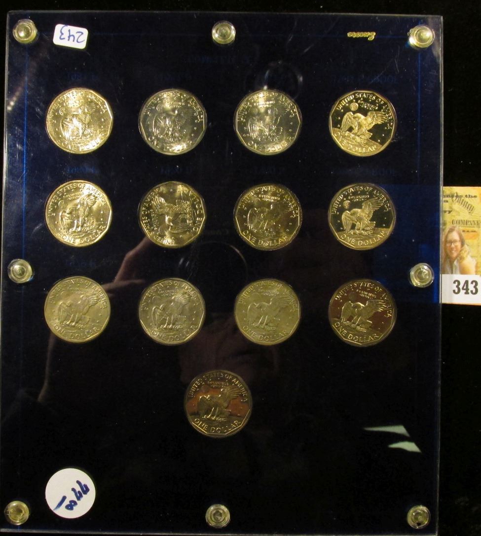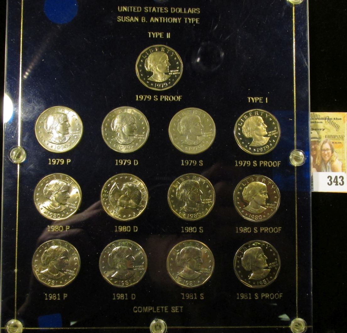 SUSAN B ANTHONY 17 PIECE COIN SET. THIS LOT INCLUDES THE 1979-T1 AND 1979-T2 PROOFS. THE 1979 TYPE 2 PROOF BOOKS AT $50 IN THE REDBOOK
