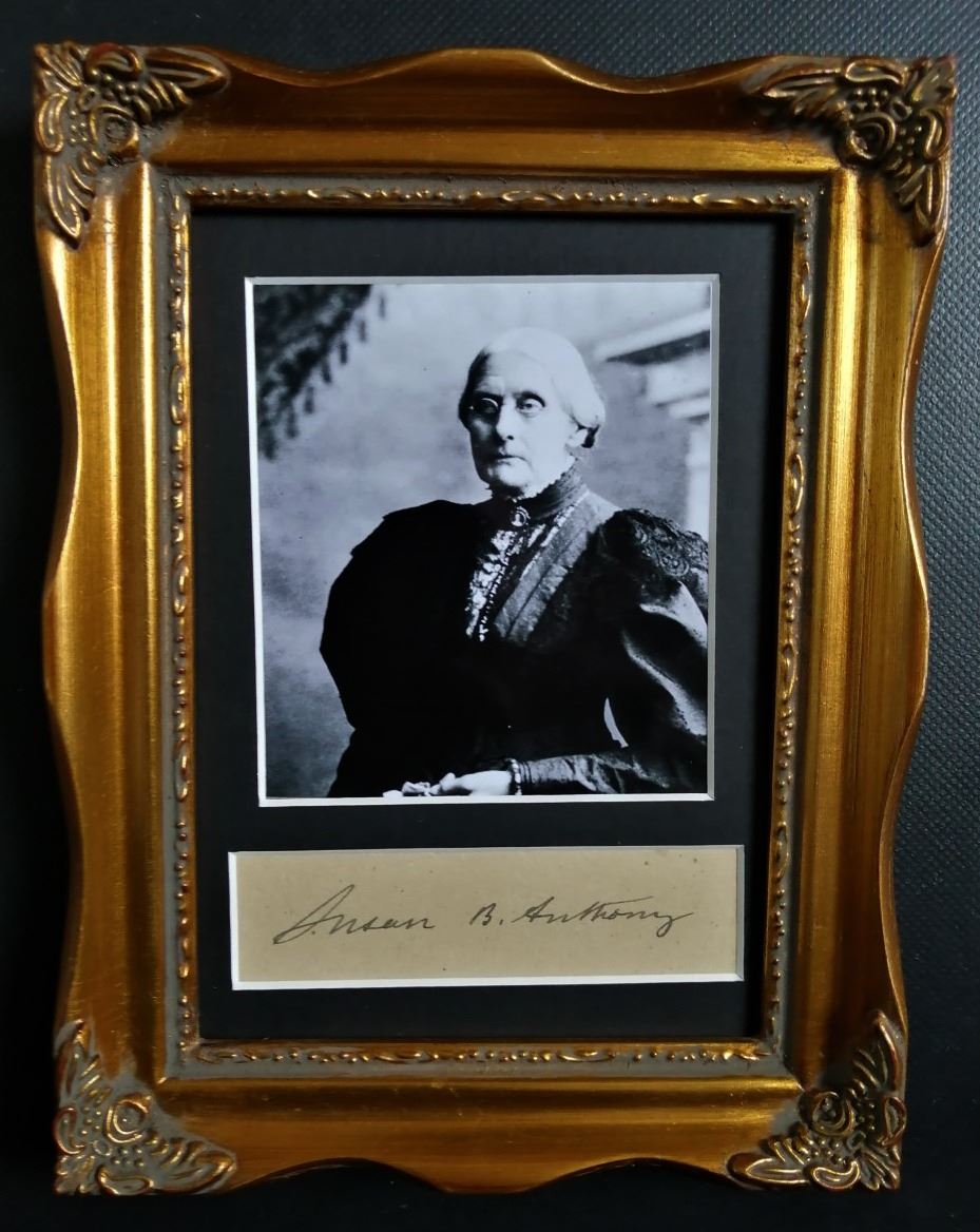 Susan B Anthony cutting, mounted and framed in a gold coloured gilt style frame. Supplied with coa.