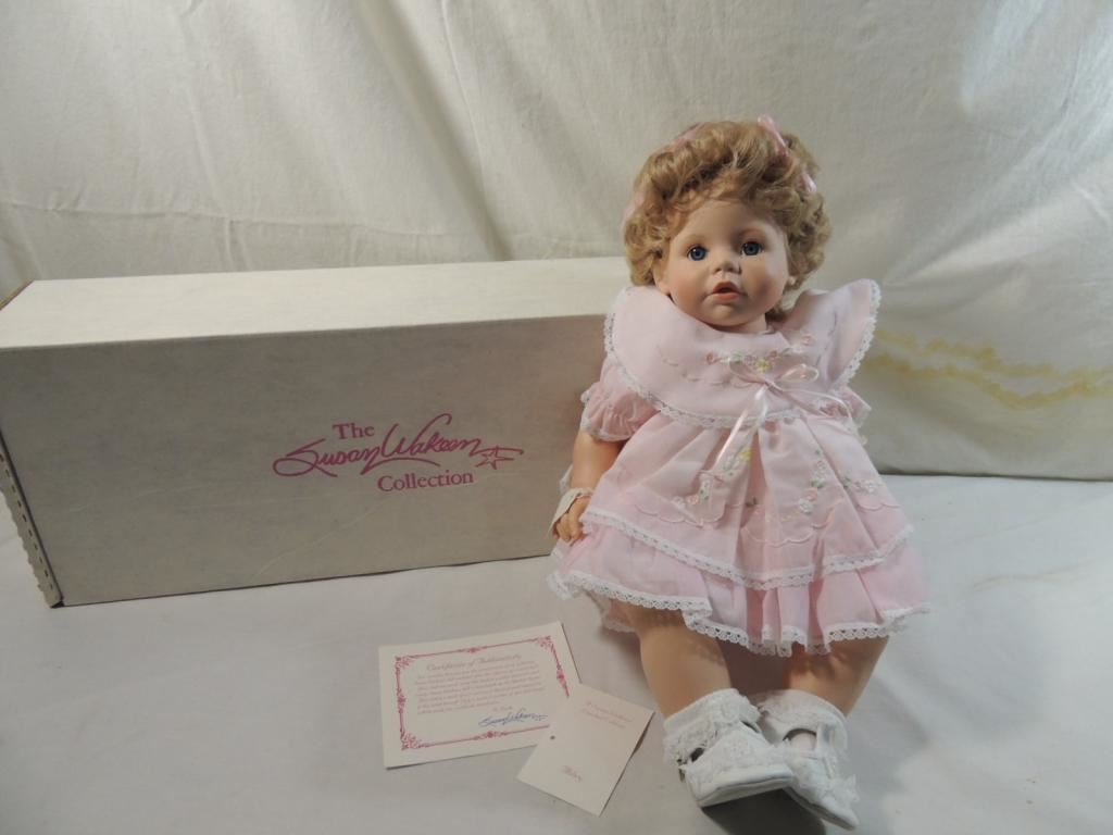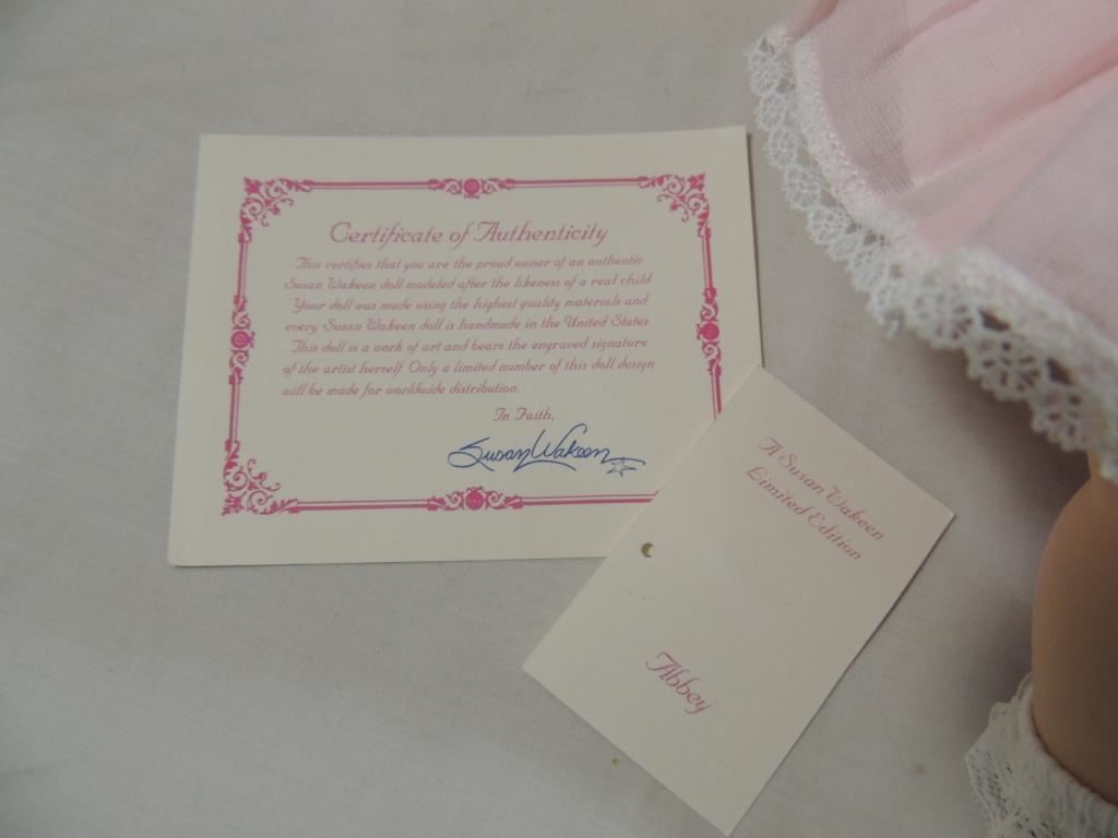 1989 AMERICAN MADE SUSAN WAKEEN LIMITED EDITION ABBEY DOLL HARD VINYL COA INCLUDED. ORIGINAL BOX. COLLECTIBLE GREAT CONDITION BLONDE HAIR SHORT BLUE EYES AS SHOWN SEE PHOTO FOR FOR MORE DETAILS.