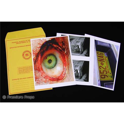 SUSPECT ZERO - Evidence Photos - Includes FBI Sensitive Materials Department folder and three 8 x 10" prints: A close up of an eyeball, a car window that reads "You're welcome Tom", and a New Mexico license plate. (SZ2018)
