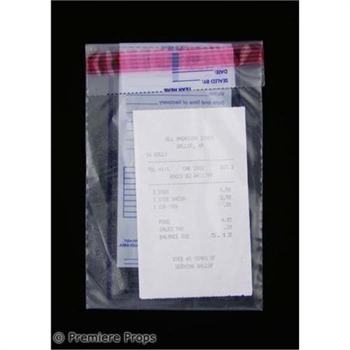 SUSPECT ZERO - FBI evidence bag with a reciept from "All American Diner" on August 11, 2002 at 4:17AM for eggs, bacon, and coffee (Measures ~ 4.75" x 7.25") (SZ2016)