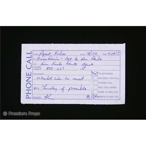 SUSPECT ZERO - Katie's (Nicole DeHuff) phone message note to Fran Kulok (paper) (Measures ~ 4.75" x 2.75")(SZ2017)