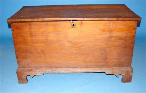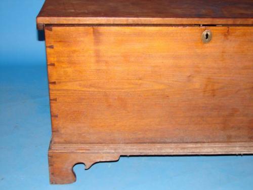 SUSSEX COUNTY DELAWARE WALNUT BLANKET CHEST. Dovetailed construction. Bracket feet. Has till in interior. Shows splitting to front right foot. Missing lock on inside. Shows some signs of wear. 22" H, 37.5" W, 18" D