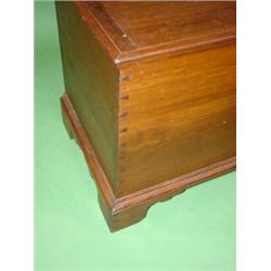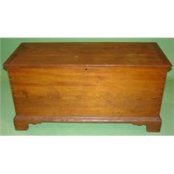 EARLY DOVETAILED HEART PINE SUSSEX COUNTY DELAWARE BLANKET CHEST. Has pegged construction. Till on inside. Single board top. Bracket feet. Good overall cond. 24"H, 48.5"L, 30.25"D. Old Refinish.