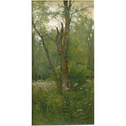 SUZOR-COTÉ, Marc Aurèle de Foy, R.C.A., 1869-1937. "Wild Flowers in the Forest". Huile sur toile, signée et datée "94". Oil on canvas, signed and dated "94". 27 1/4" x 14" - 69.2cm x 35.5cm. $22000/28000