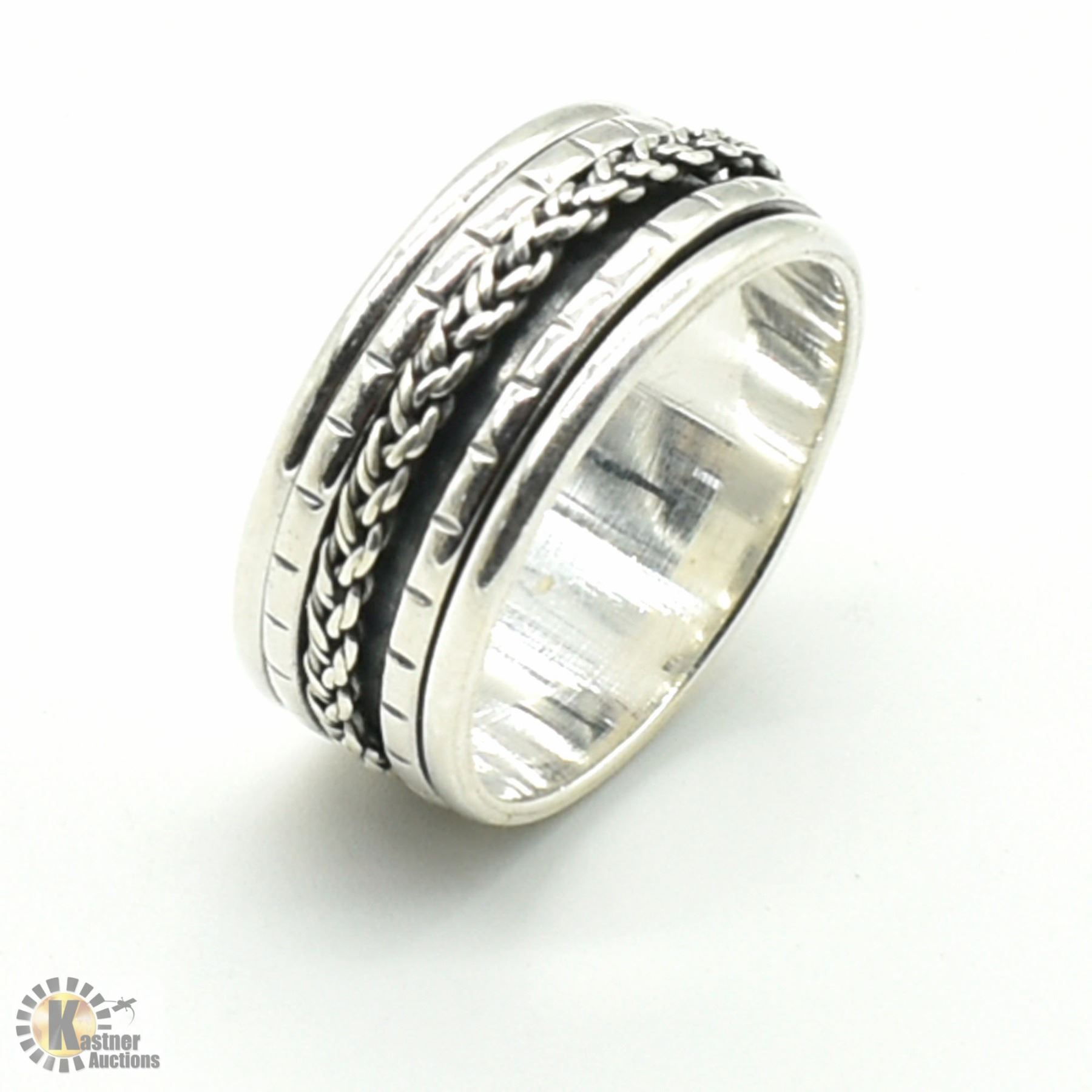 SILVER HAND MADE SPIN MENS RING RING (~WEIGHT 7.85G)