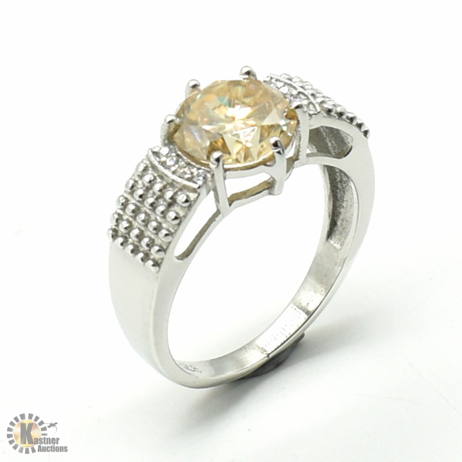 SILVER MOISANITE(2.6CT) RHODIUM PLATED MENS RING RING (~WEIGHT 5.45G) \