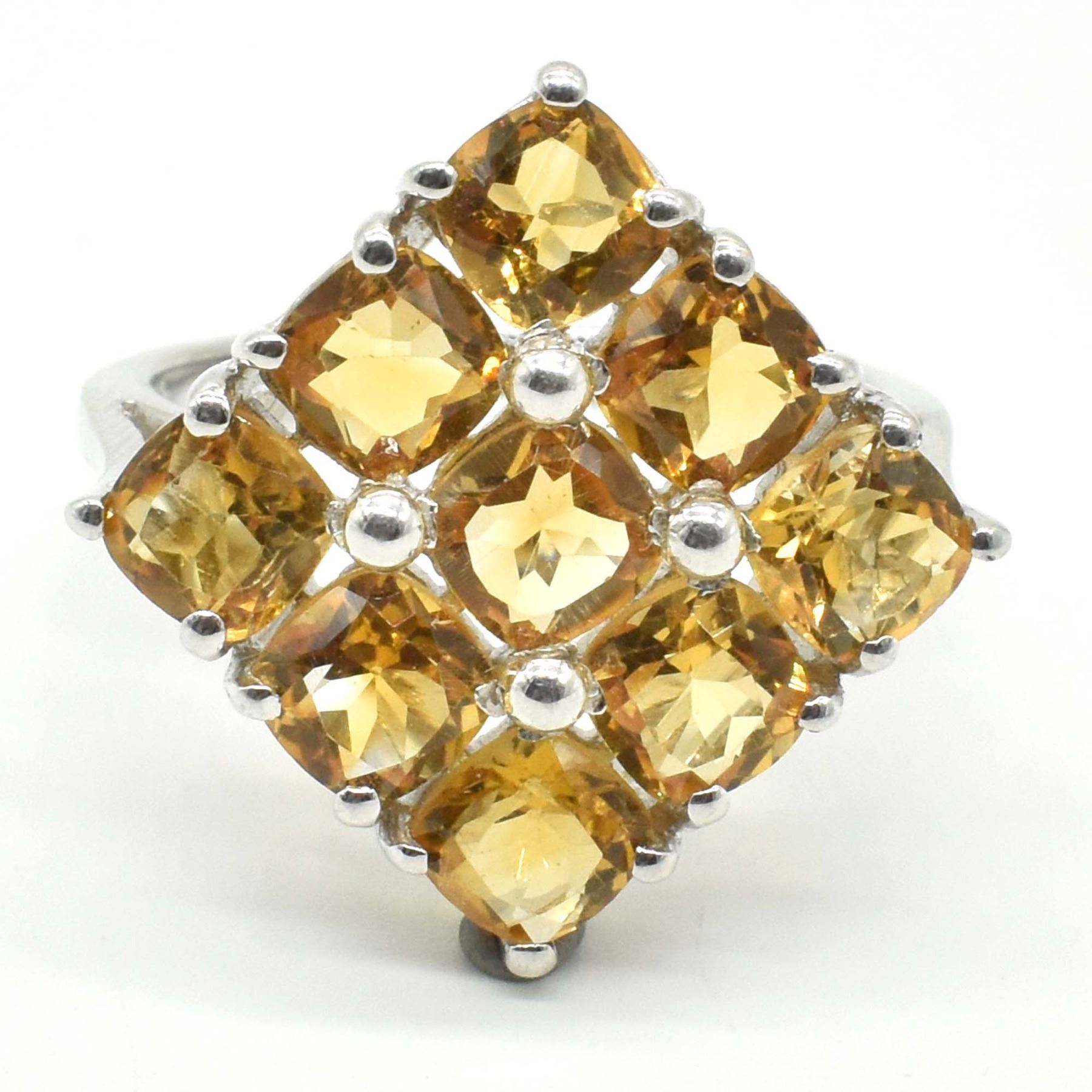 SILVER CITRINE(3.1CT) RHODIUM PLATED RING (~WEIGHT 4.85G)