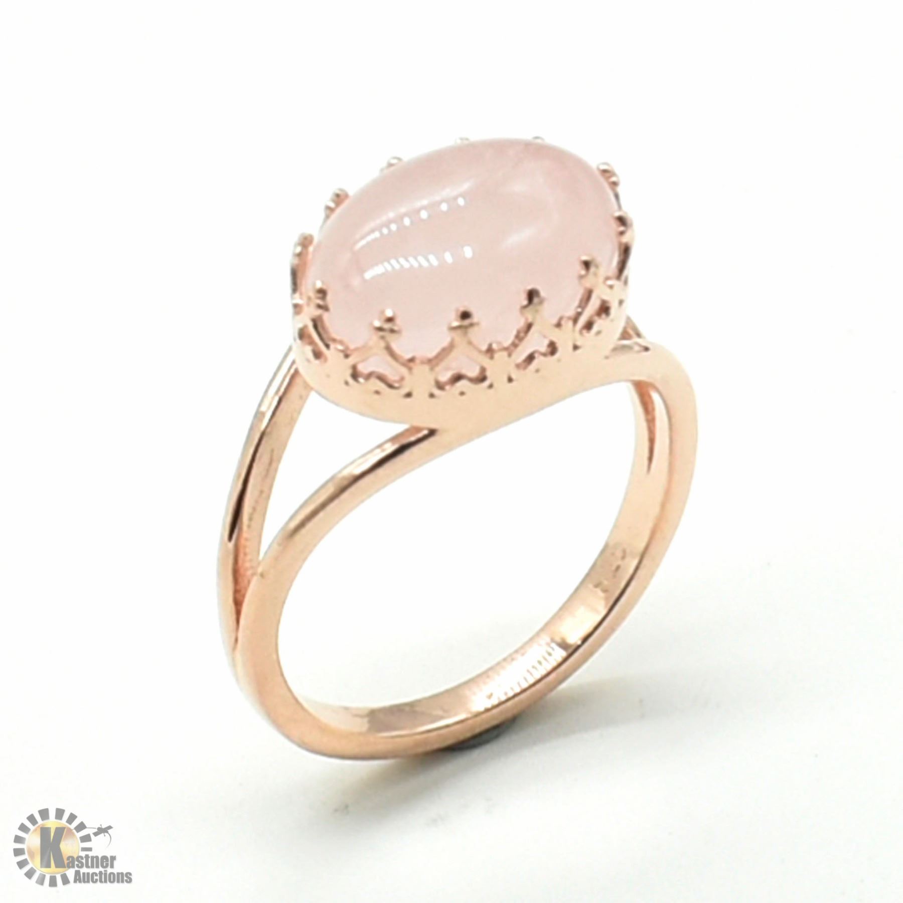 ROSEGOLD PLATED SILVER ROSE QUARTZ(7.5CT) ROSE GOLD PLATED MENS RING RING (~WEIGHT 5.3G) SIZE 10