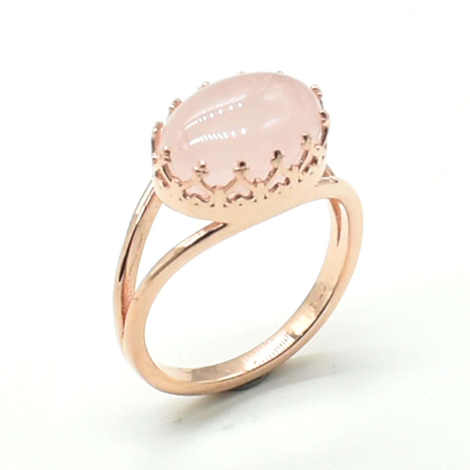 ROSEGOLD PLATED SILVER ROSE QUARTZ(7.5CT) ROSE GOLD PLATED MENS RING RING (~WEIGHT 5.3G) SIZE 10
