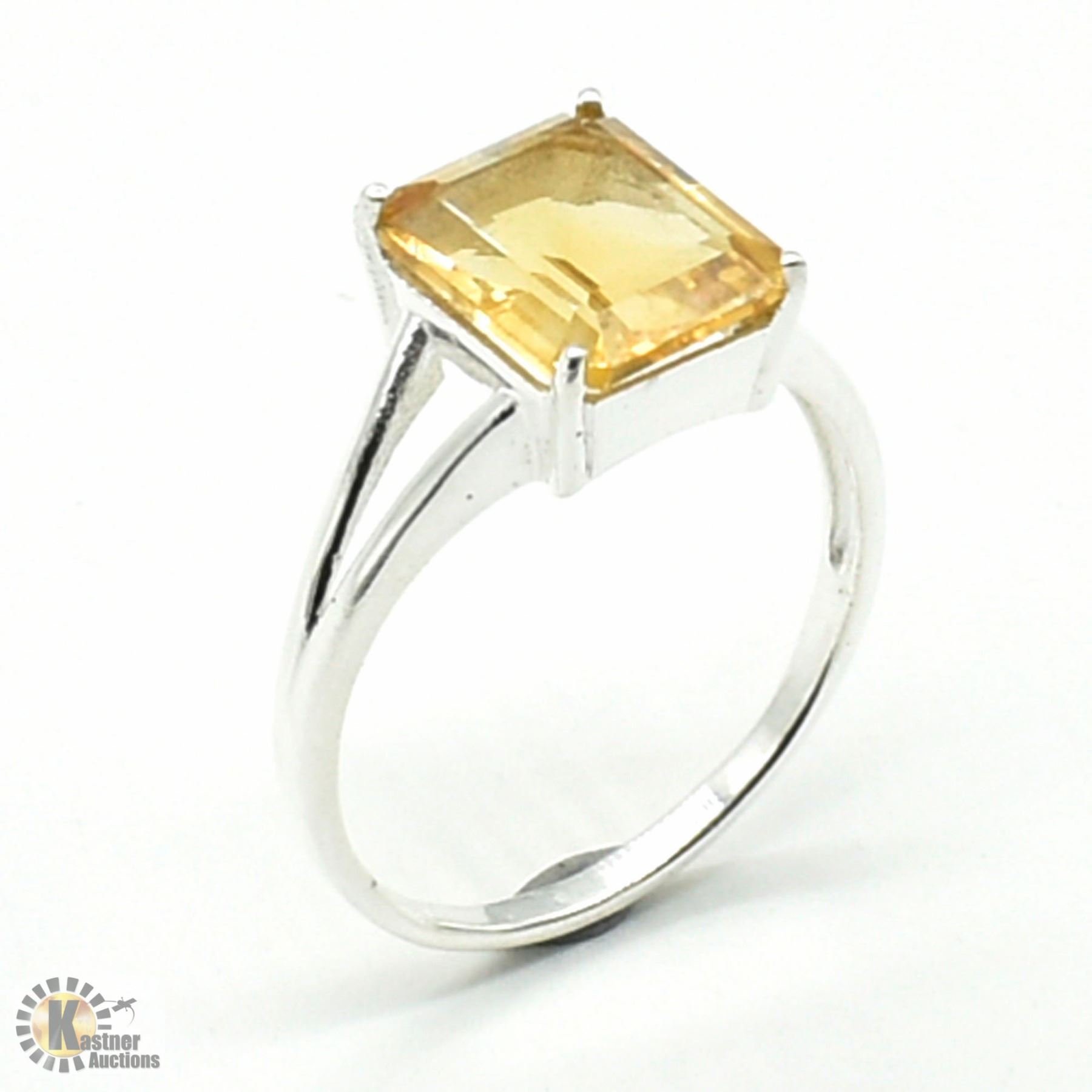 SILVER CITRINE(3.1CT) RHODIUM PLATED MENS RING RING (~WEIGHT 3.2G)