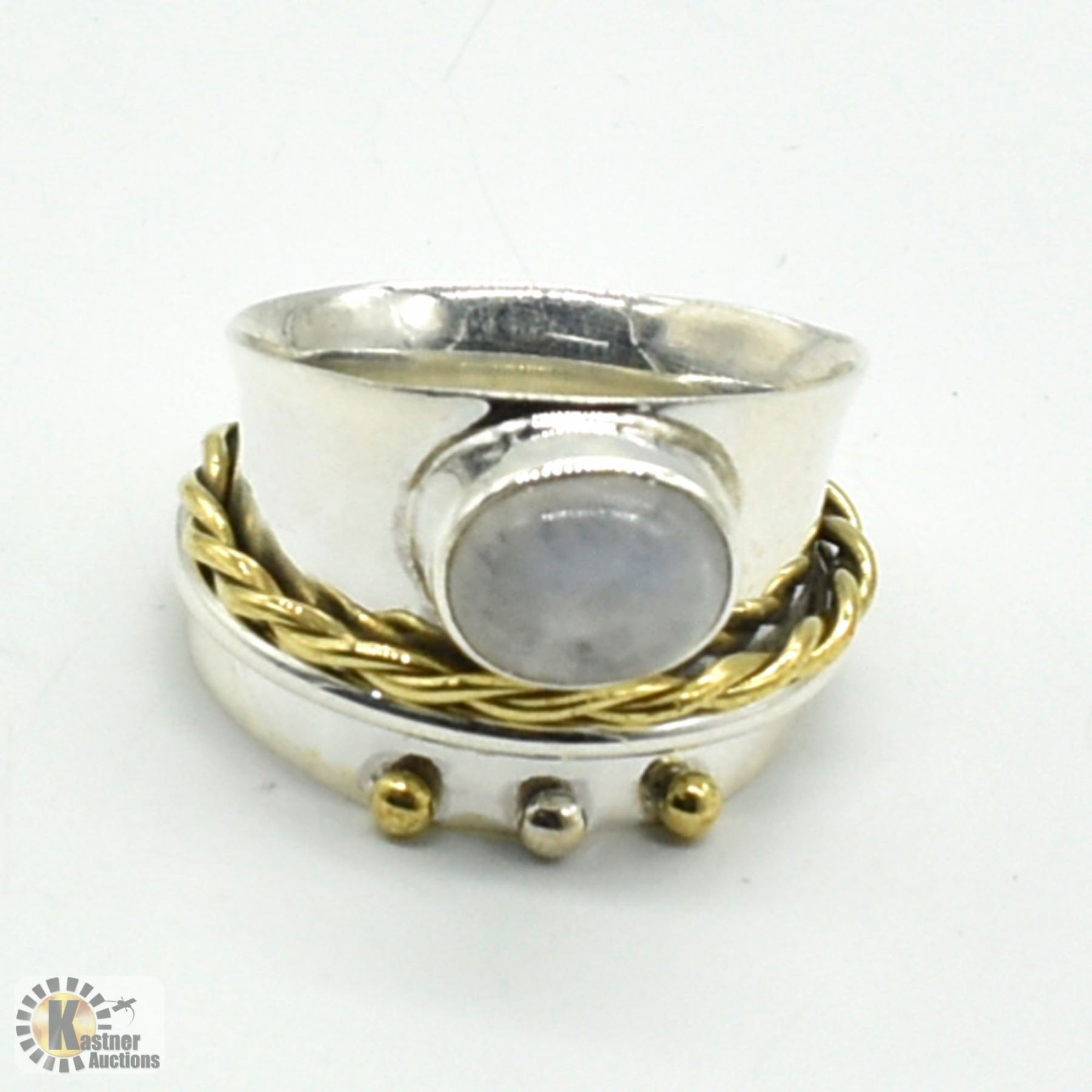 SILVER MOONSTONE(2.7CT) HAND MADE MENS RING RING (~WEIGHT 7.35G)