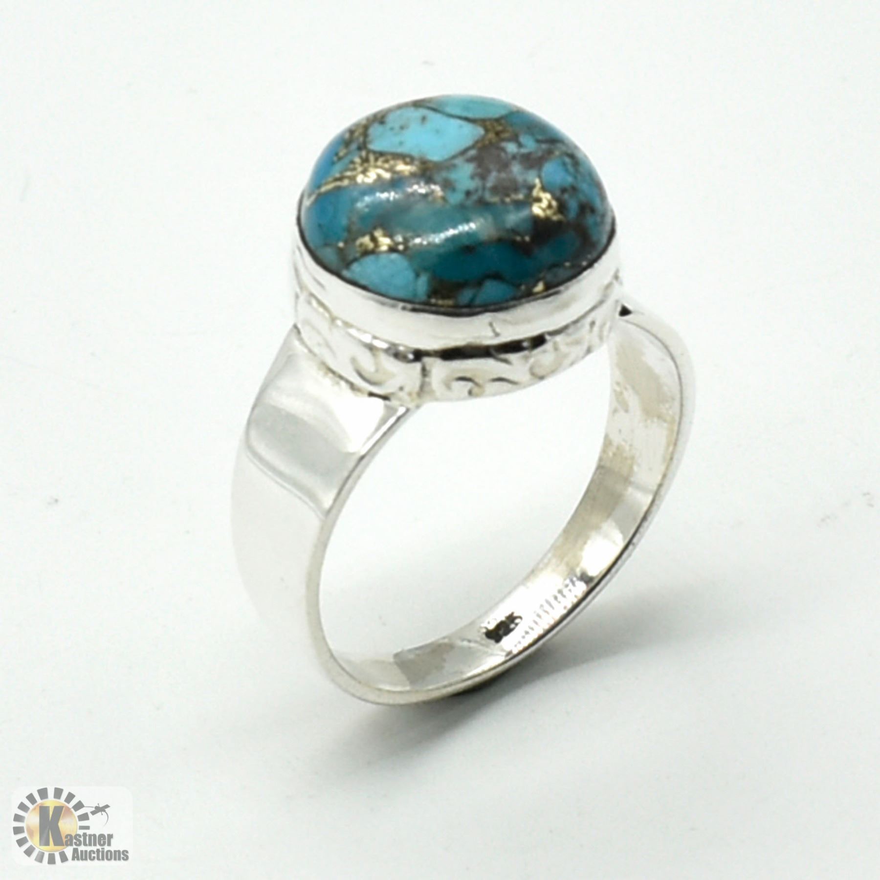 SILVER BLUE COPPER TURQUOISE(6.3CT) HAND MADE MENS RING RING (~WEIGHT 6.3G) SIZE 11
