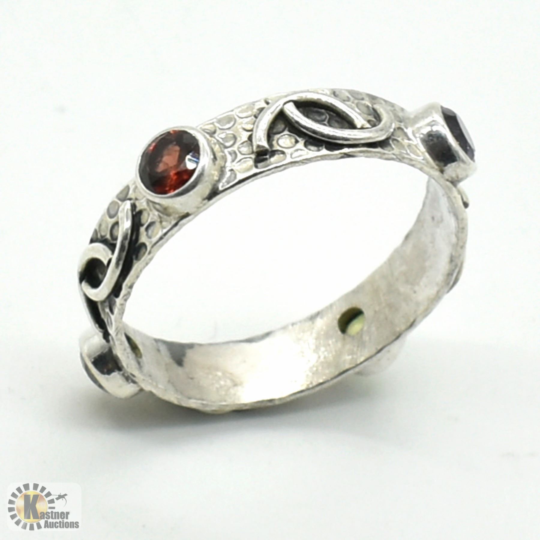 SILVER MULTI COLOUR GEM STONE(0.9CT) HAND MADE MENS RING RING (~WEIGHT 3.45G) SIZE 10