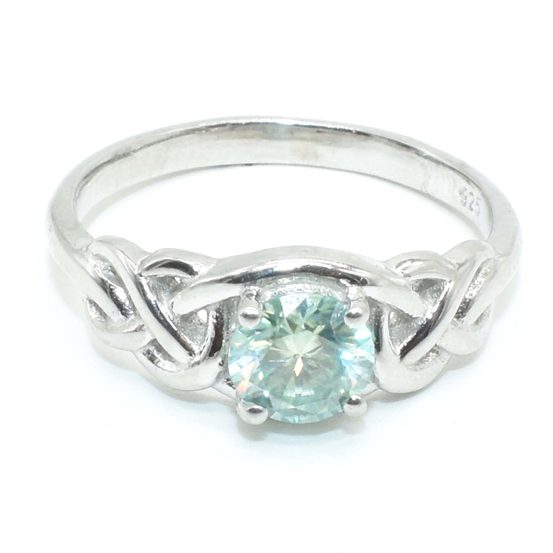 SILVER MOISSANITE (ROUND 5.50 MM)(0.7CT) RHODIUM PLATED TEST AND LOOKS BETTER THAN DIAMOND RING (~WEIGHT 2.7G)