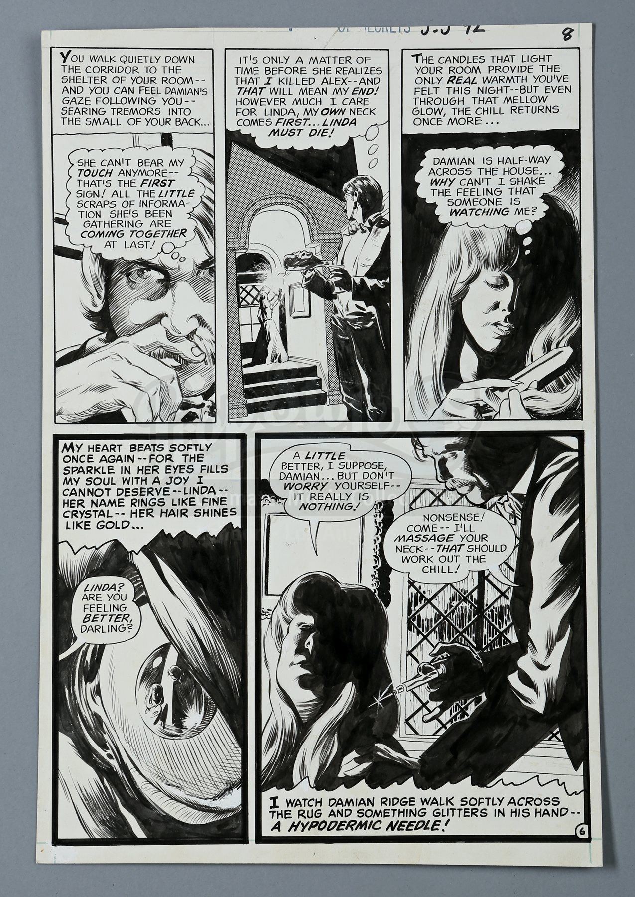 This original pencilled-and-inked artwork is drawn on Bristol board by Bernie Wrightson. Included with this lot is a reference copy of Silver Age Classics House of Secrets #92 (1992). This comic book reprinted the story from The House of Secrets #92, in which this art was originally published. Some white-out correction fluid is present, and the board has tack holes at the top and bottom. However, the artwork is in very good condition. Dimensions: 40 cm x 27 cm (15 ¾” x 10 ½”)