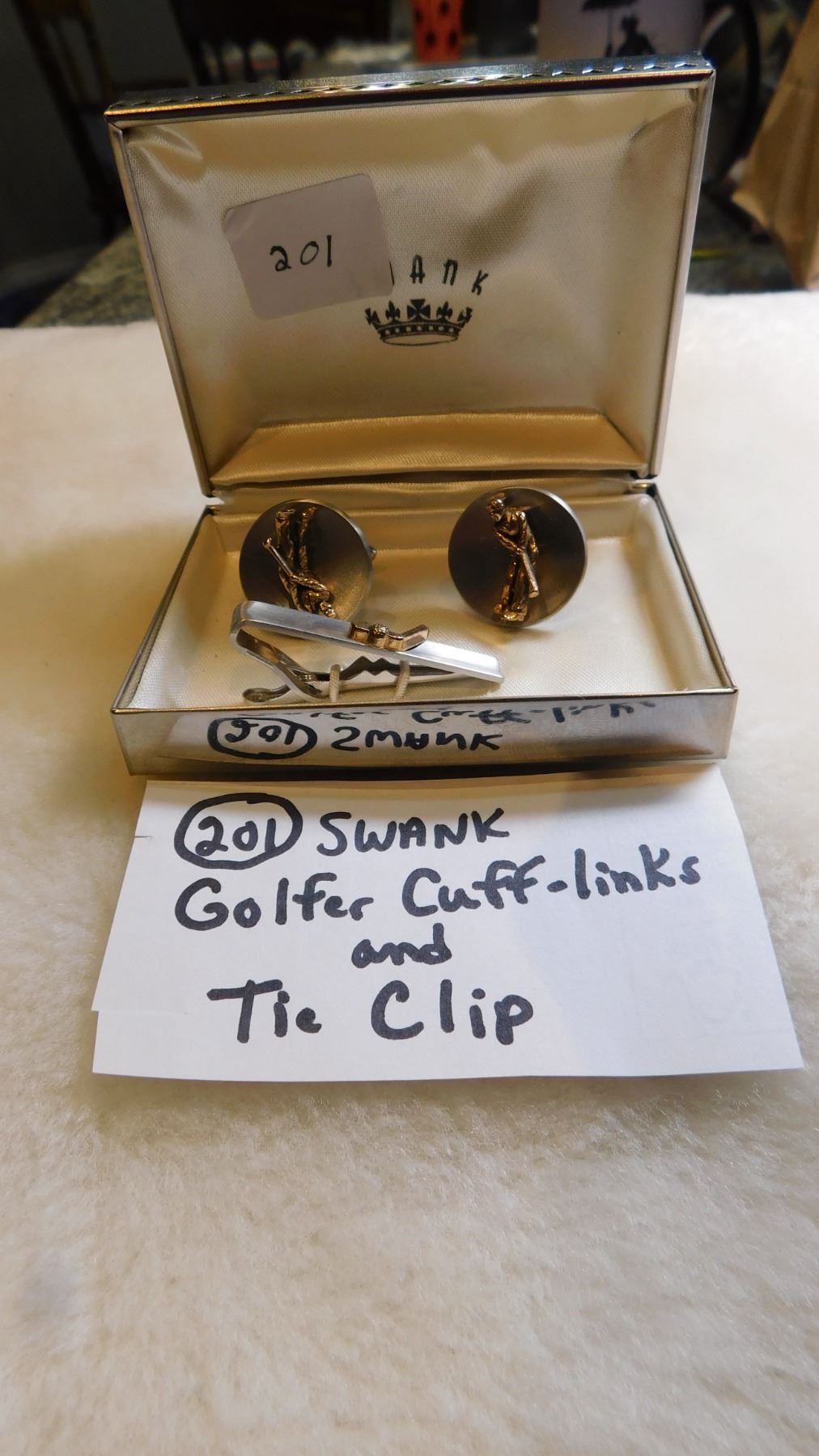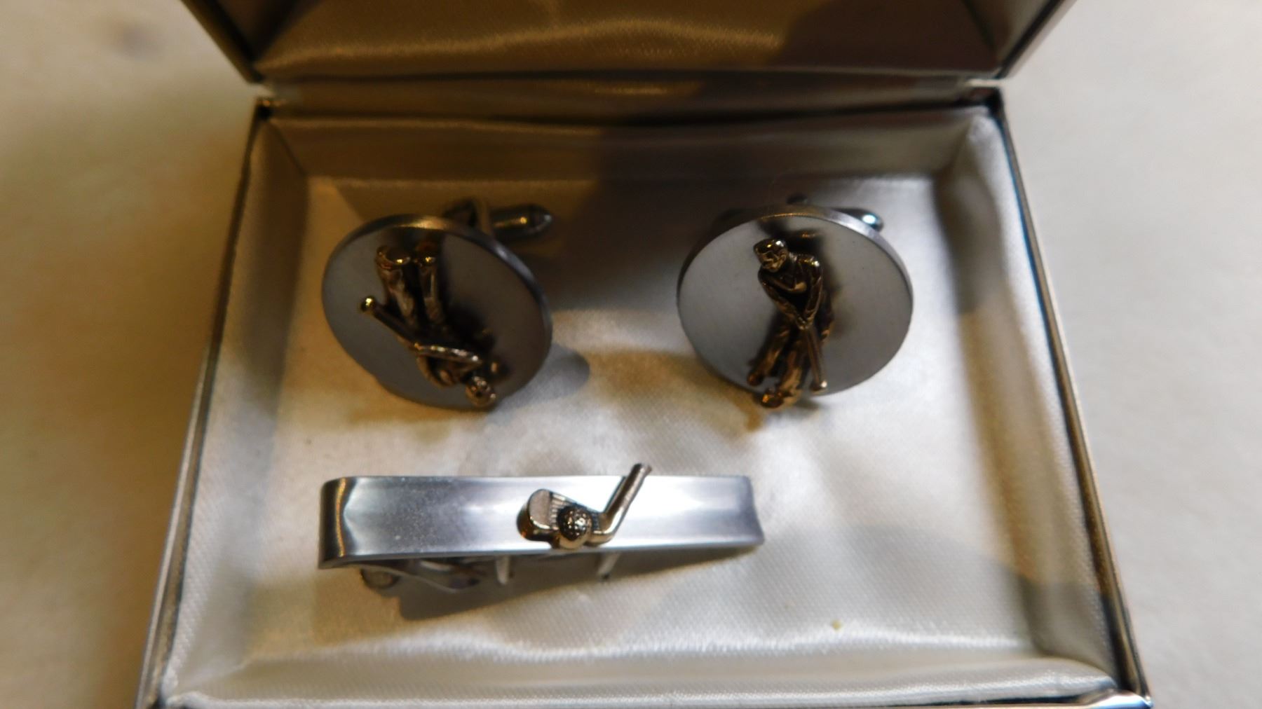 SWANK, GOLFER CUFFLINKS AND TIECLIP