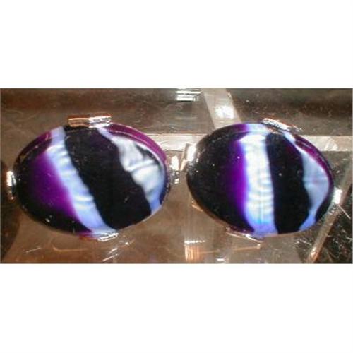 Great pair of vintage Swank cufflinks. Beveled ovals of striated slag glass in purple, light blue and black.