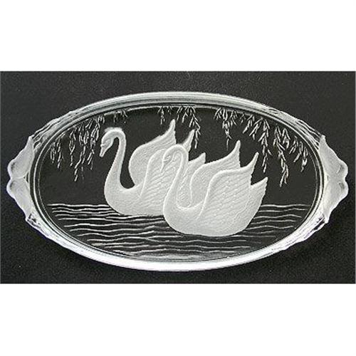 <tr><td>Title:SWANS Clear and Satin Pressed Glass Vanity Tray</td></tr>
