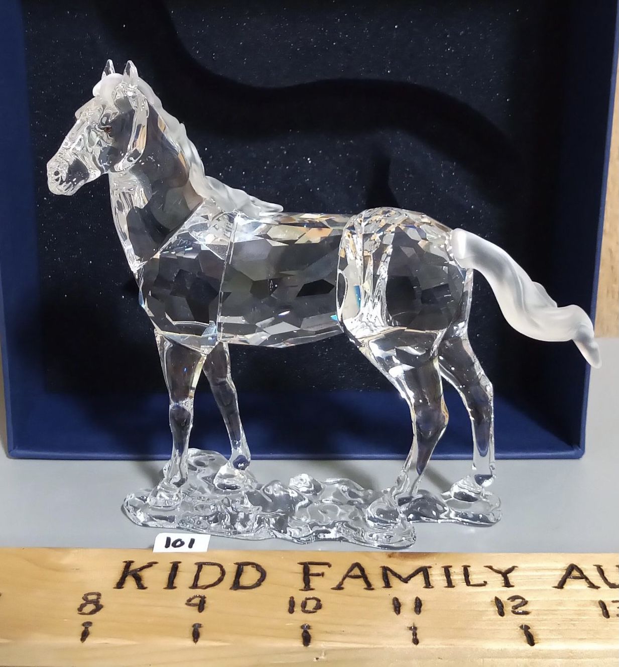 SWAROVSKI CRYSTAL STALLION FIGURINE - THIS LARGE PIECE FEATURES UNFACTED MATT CRYSTAL MANE & TAIL