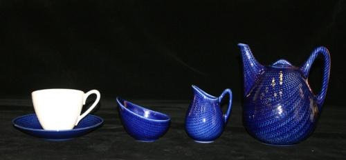 TESERVIS, "BLÅ ELD" RÖRSTRAND, KANNA, SOCKERSKÅL, GRÄDDKANNA, 12 KOPPAR MED FAT (15)