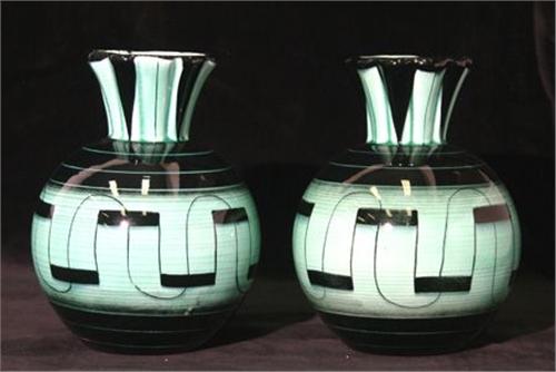 1 PAR VASER, GRÖNSVART GLASYR MED STILISERAD DEKOR, ILSE CLAESSON, RÖRSTRAND, H22 (2)