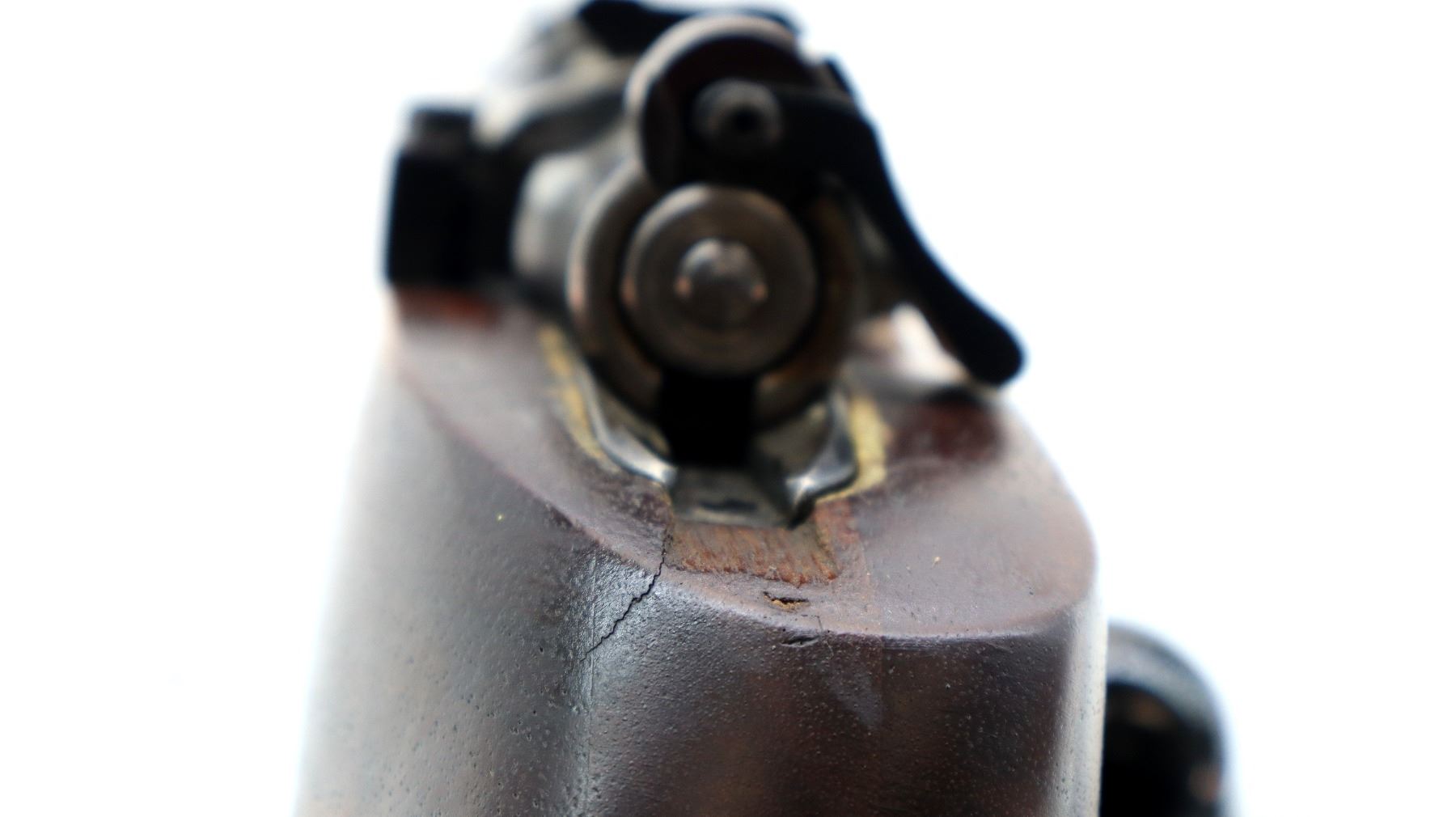 Wear: Metal finish shows some light rust speckles, scratches, handling marks and wear. Stock shows marks, scratches and wear.