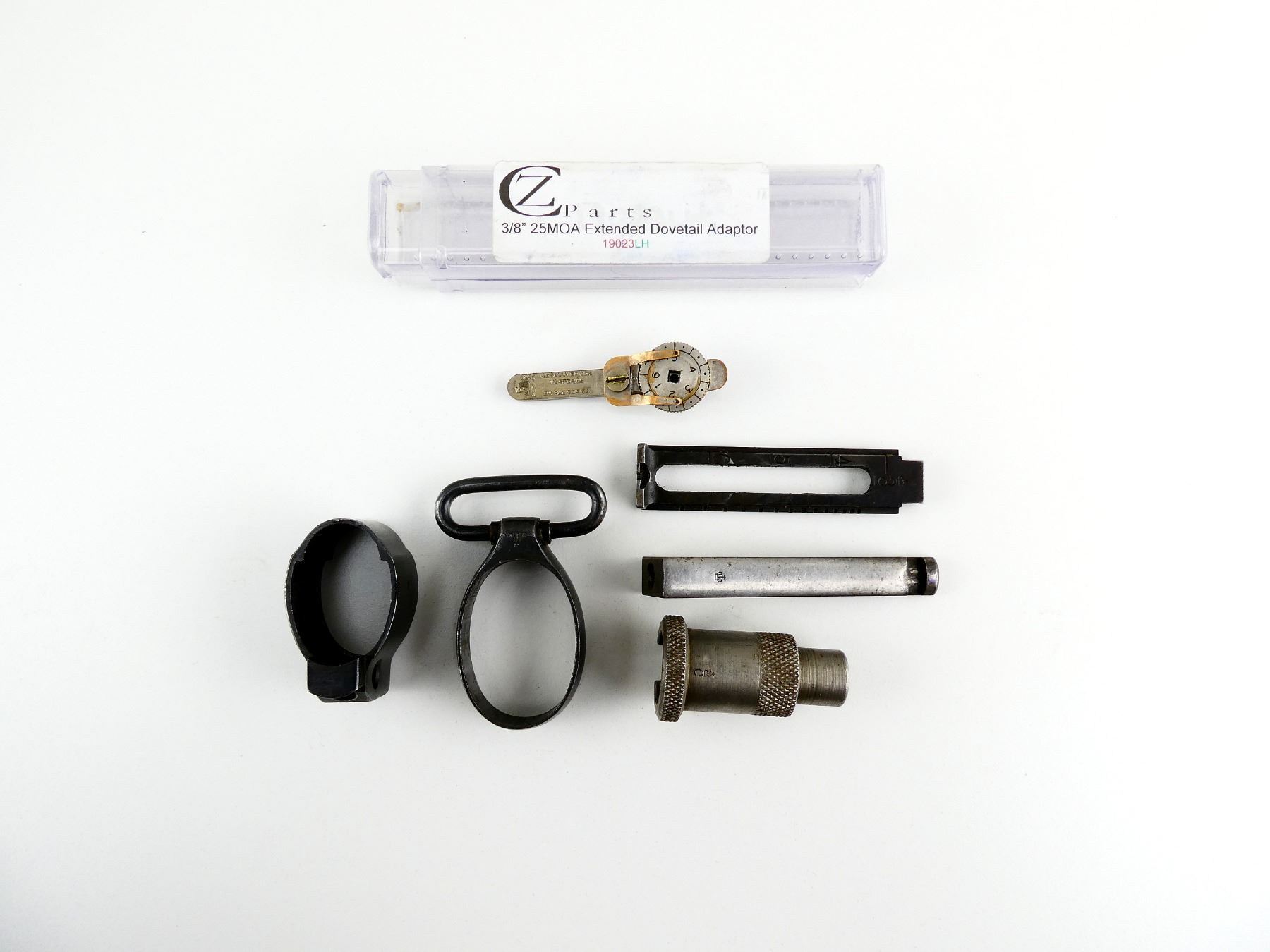 LOT INCLUDES; BARREL BANDS, REAR SIGHT, BAND RETAINER, TARGET REAR SIGHT, MUZZLE GUIDE, ETC. MAY REQUIRE FITTING. SEE PHOTOS.