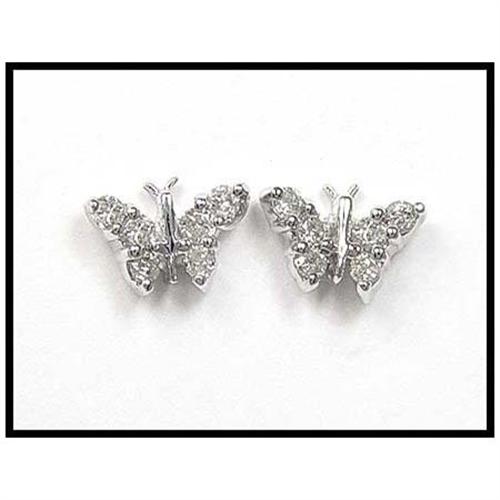 12 round diamonds in these 14K solid white gold earrings total .19 carats. The compelling butterfly design is dainty and and elegant. Measures 6mm x 8mm (7/32" x 5/15"). They are sure to draw compliments from those with good taste in fine jewelry. Very well made.