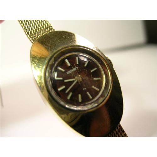 <tr><td>Type:LADIES SEIKO 17 JEWEL MAN. WIND WATCH/RETRO STYLE OVAL SHAPED CASE W/BUARGANDY FACE AND MESH SEIKO BRACELET</td></tr>