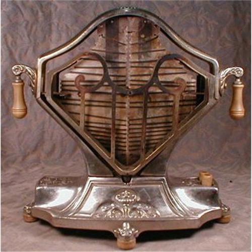 <p>Universal E9410 made by Landers, Frary & Clark is called the Sweetheart Toaster because of its delicate feminine design featuring bakelite earring-like handles and a delicate engraved design on its nickel body. It cooks two slices