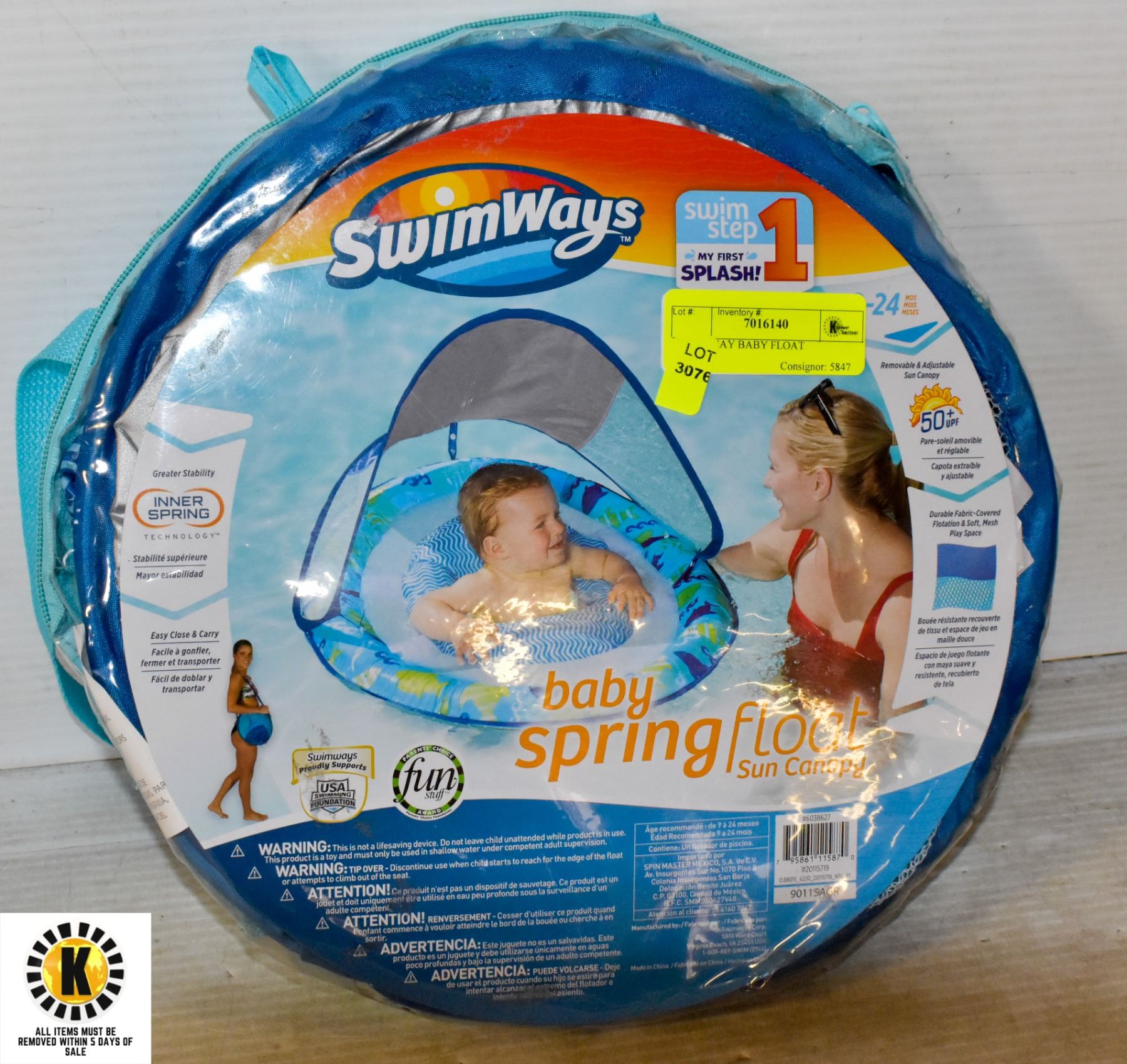BABY POOL FLOAT: FEATURES A SOFT MESH SEAT WITH SECURE LEG HOLES SO BABY CAN KICK FREELY UNDERWATER AS WELL AS A MESH PLAY SPACE SO YOUR LITTLE ONE CAN SPLASH AND PLAY WITH POOL AND WATER TOYS