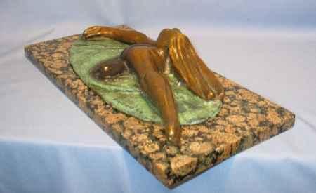 THE SCULPTURE MEASURES 14 1/2 INCH X 9 INCH X 5 INCH.