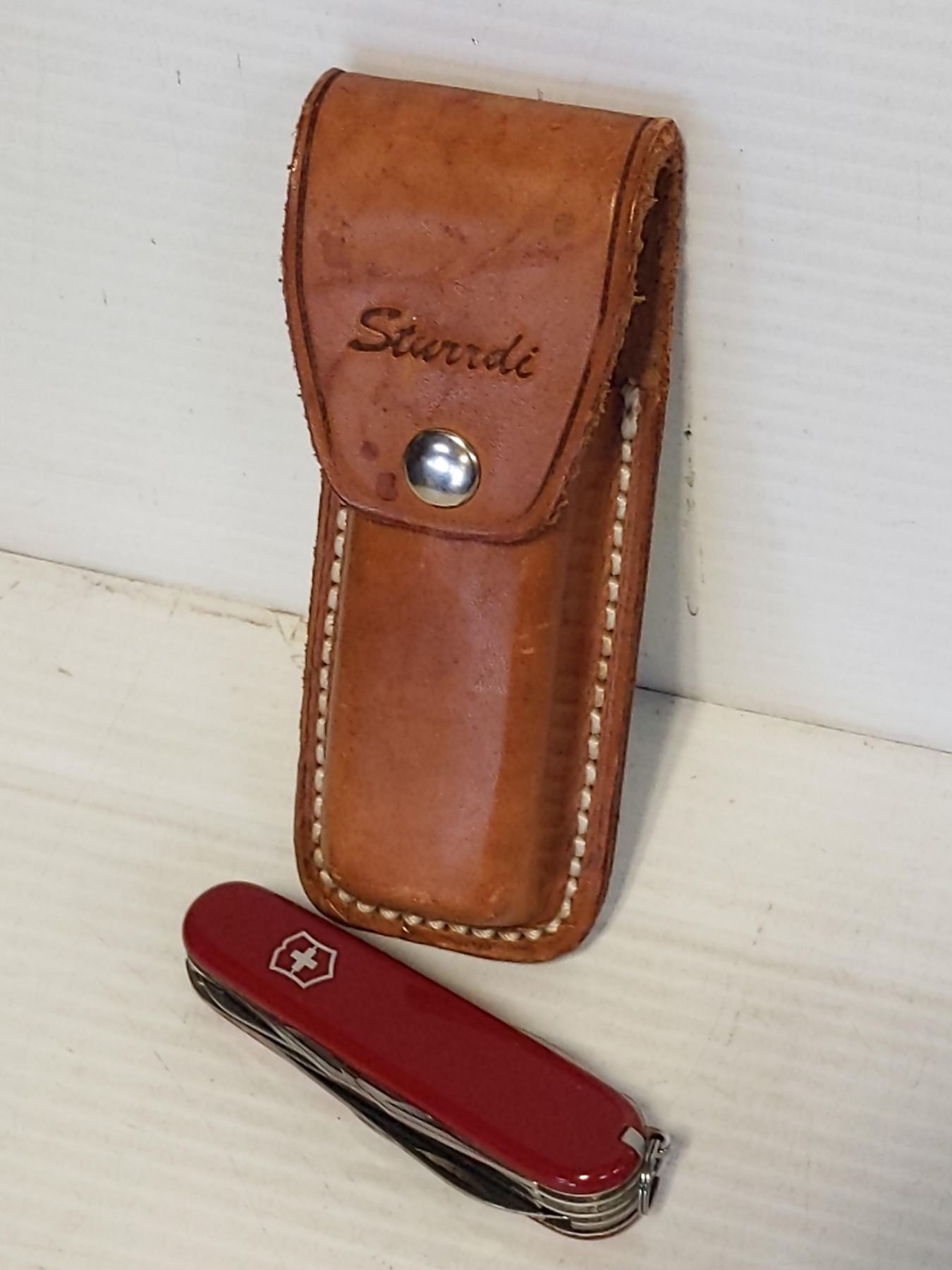 SWISS ARMY KNIFE IN LEATHER BELT SHEATH